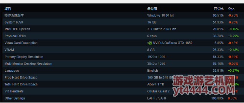 近日,Steam平台发布了五月硬件调查报告,纵观显卡、CPU和操作系统等数据环比变化均不大。最常用显卡仍是GTX 1650,常用操作系统为Win 10。
